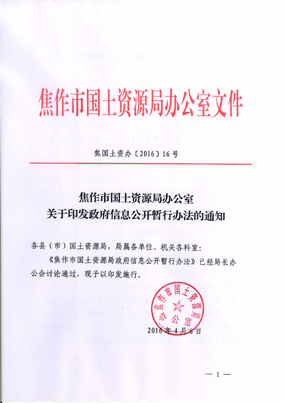 焦作市国土资源局政府信息公开暂行办法-澳门英皇娱乐app下载
